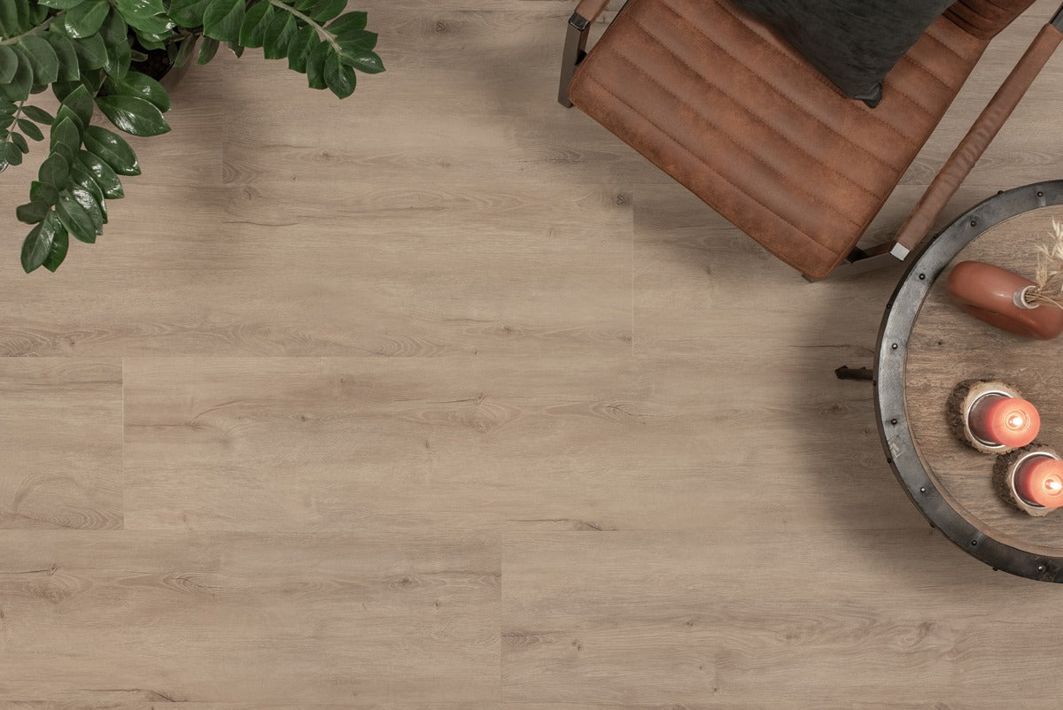 Breedte, MEGAMAT, maar vooral een uiterst realistisch eiken design: de Landhuis Click PVC in de kleur Grijze Eik heeft het allemaal. De luxe eiken klik PVC vloeren van het Landhuis Click PVC zijn niet alleen extra breed met 30,5 cm, maar ook nog eens extra lang met maar liefst 150 cm! Waar standaard PVC verlijmd moet worden, leg je deze klik PVC vloer gemakkelijk en snel met de eenvoudige i4F verbinding. Dankzij de ‘rigid mineraal core’ tussenlaag is dit Click PVC ijzersterk. Daarnaast ligt het door deze zware tussenlaag ook uiterst stabiel in iedere ruimte.