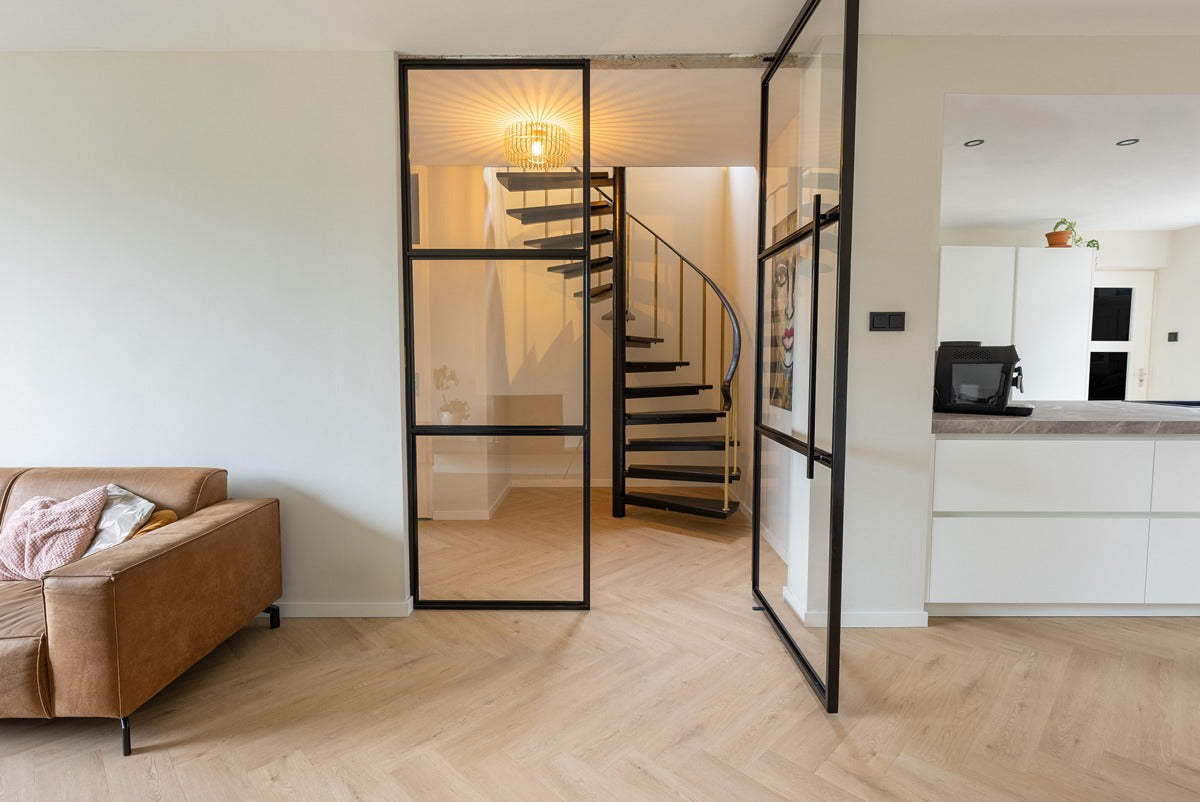 Ontdek de unieke Floer Walvisgraat Click PVC in de kleur Gaia Grijsbeige, een vloer die je eenvoudig zelf kunt leggen met een realistisch eiken design. Deze grijsbeige Walvisgraat Click PVC vloer straalt elegantie en luxe uit, terwijl hij alle voordelen van klik PVC met zich meebrengt. Deze XL visgraat klik PVC vloeren zijn een grotere variant van de traditionele visgraat click PVC en zijn voorzien van een rigide minerale kern, waardoor ze buitengewoon stabiel op de vloer liggen en 100% waterbestendig zijn.